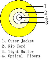 1¡¢Application Indoor general purpose cable Interconnect cable for jumpers, patch cords or pigtails 2¡¢Structure The cable consists of a single fiber buffered to 0.9 mm in a tight or semi-tight construction. Physical protection and tensile strength are provided by aramid yarn wound around the buffered fiber. The outer jacket is extruded form PVC, flexible polyurethane or LSOH. The standard cable diameter is 2.8 mm, however 1.7 mm ( Mini ST ) 2 and 2.5 mm diameters are also available. 3¡¢Benefits Light weight and flexible Easy termination, rugged cable-connector interface Flame retardant jacket 4¡¢Standard Cables tested according to TIA/EIA-455, ICC-60794-1-2 and EN-187000 Cables ordered with PVC or HFFR sheath meet IEC60332-1 standard. On request cables meeting the IEC-60332-3 can be supplied. Available in constructions meeting UL1666 ( Riser rating ) All pass the ISO-9001 Standard 5¡¢Specification