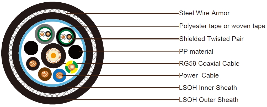 1x RG59 + 4x2.5 Power Cable + 2x1x2x22AWG Data Pairs SWB LSZH Sheathed Composite Cable