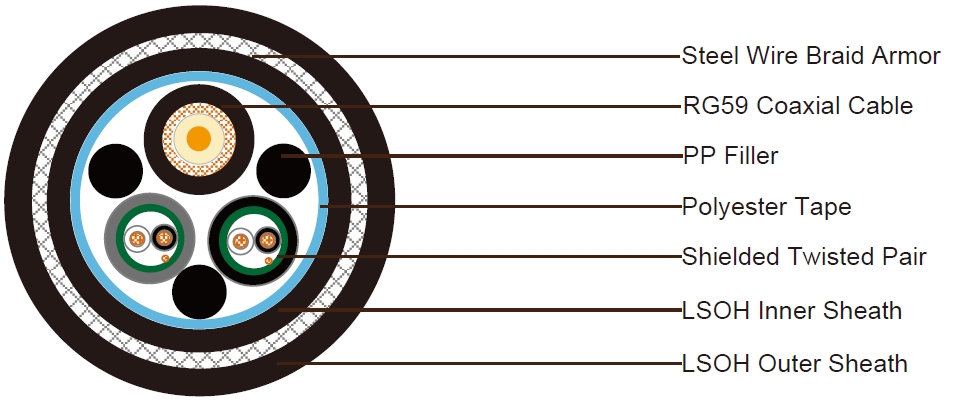 1x RG59 + 2x1x2x24AWG Data Pairs SWB LSZH Sheathed Composite Cable
