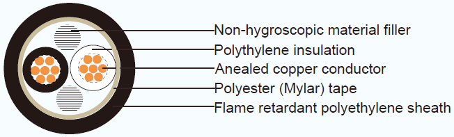 | No. of cores | Nominal sectional area | No. of wire | Diameter of Conductor (approx.) | Thickness of insulation | Thickness of sheath | Overall diameter (approx.) | Maximum DC. resistance of Cdr. at 20ºC | Cable weight (approx.) |